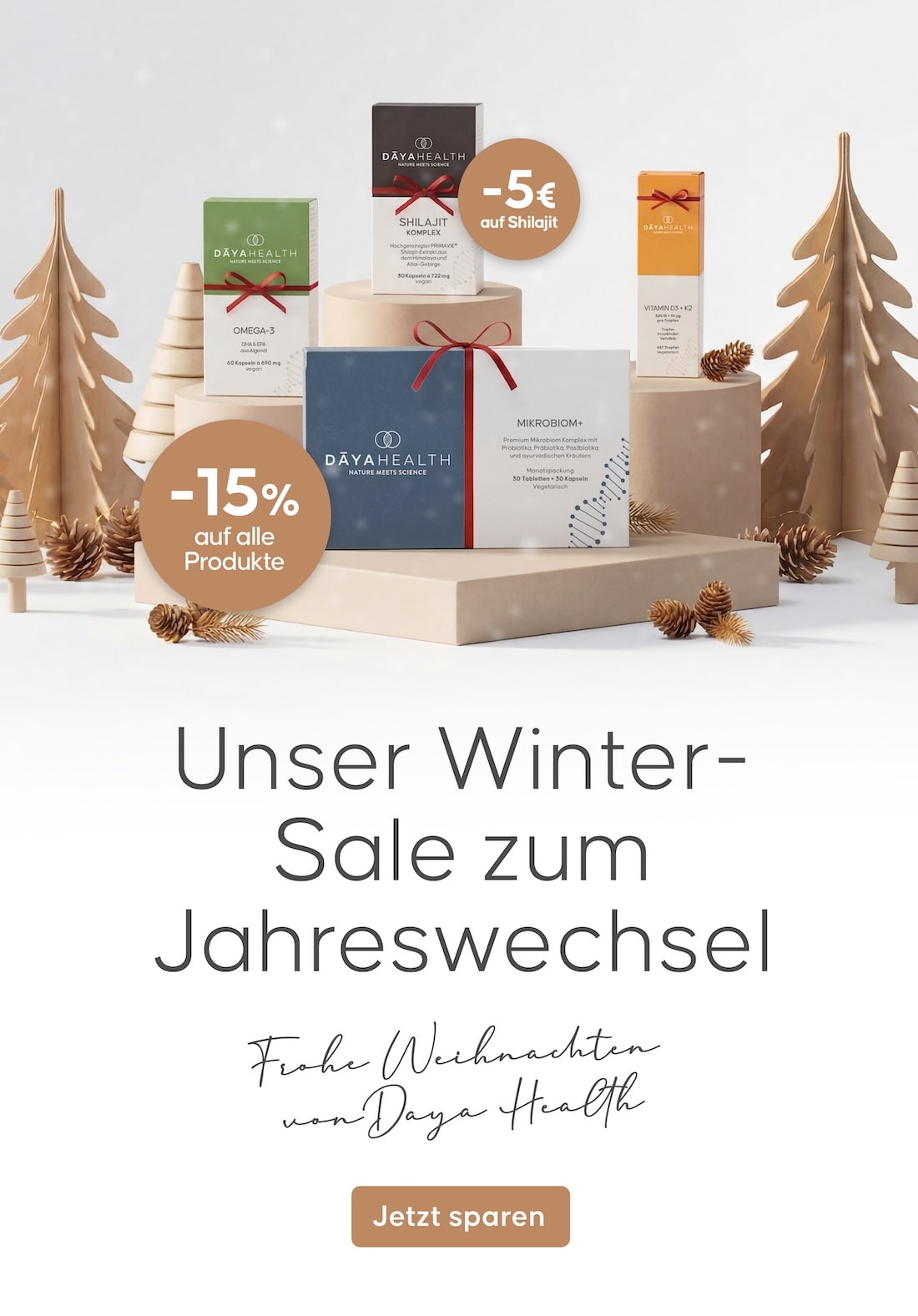 Das Wort DAYA stammt aus dem Sanskrit und bedeutet Geschenk: Wir wünschen uns, dass Sie unsere Produkte als Geschenk für Ihre Gesundheit betrachten. DAYAHEALTH vereint westliche Wissenschaft mit ayurvedischer Tradition. Unsere Nahrungsergänzungsmittel bieten Ihnen geprüfte Qualität, optimale Bioverfügbarkeit und das gesamte Wirkspektrum der Natur.