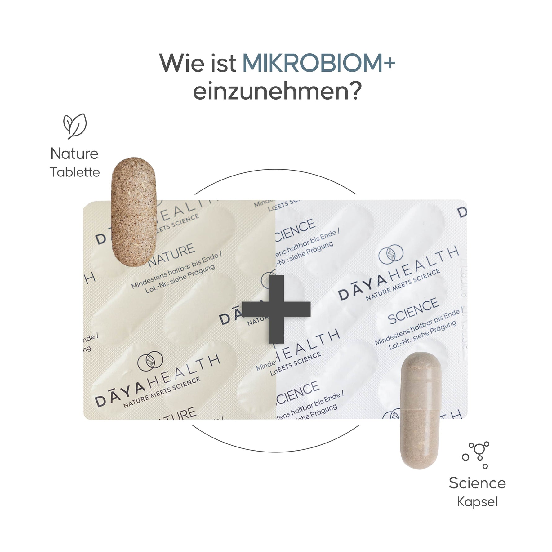Nehmen Sie pro Tag jeweils 1x Tablette (Blister Nature) und 1x Kapsel (Blister Science) mit etwas Wasser ein.